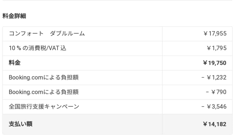 booking.comは、法人一括精算などを導入していないため、複数人で旅行をした際やビジネス出張を利用したときは現地支払いを選択する必要があります。事前支払いを選択してしまうと予約した代表者と合計金額のみの記載です。