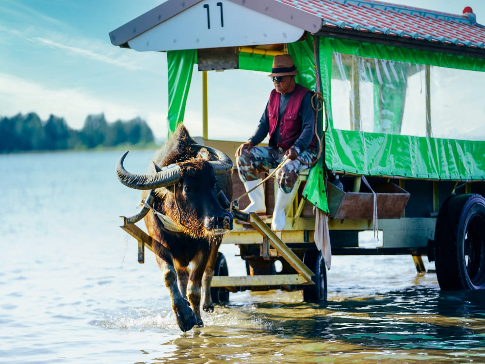 竹富島を楽しめるアクティビティの1つに水牛です。ゆっくりと竹富島の中心を回ってくれるので、竹富の情緒と風情を感じられます。また、水牛に次いでレンタサイクルが人気で、水牛とセットで借りる人が多いのが特徴。こうしたプランは事前に予約ができるため、セットで予約しておくと料金も安く手続きも簡単です。