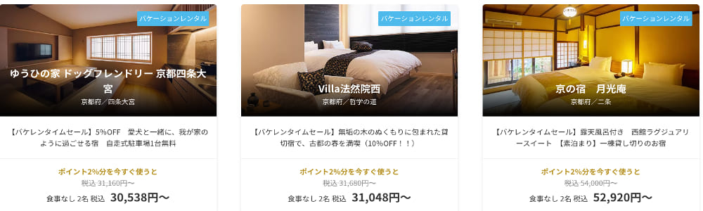 14日間限定のバケーションセールは、10,000円前後から80,000円前後のバケーション施設に予約できます。