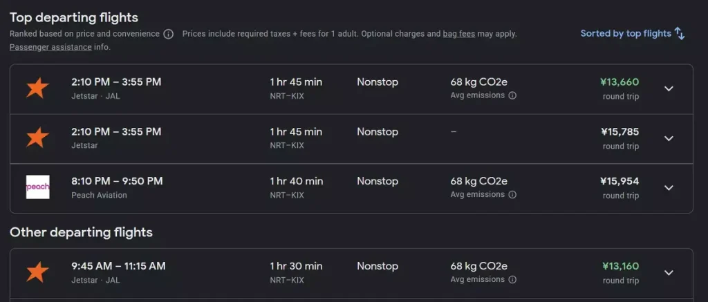 - 格安航空券の表示漏れ: 時折、特別なプロモーションや割引航空券が検索結果に反映されないことがある。