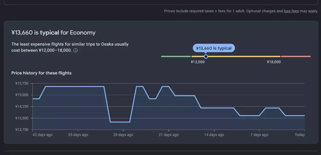 さらに、googleフライトならではの機能として航空券の価格変動をリアルタイムで調べてくれます。これにより最適なタイミングで安い航空券を見つけられます。